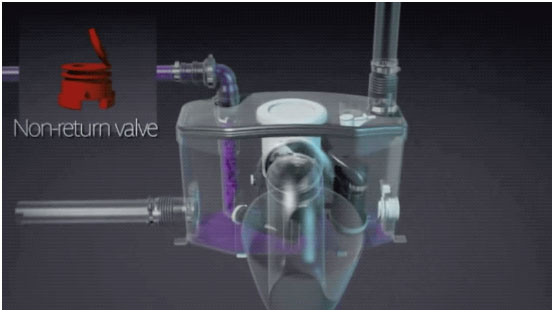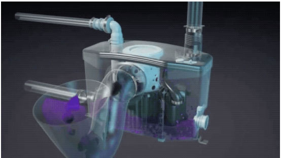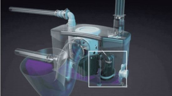 1、当冲厕时,提升器内水位上升,内置水泵自动启动。