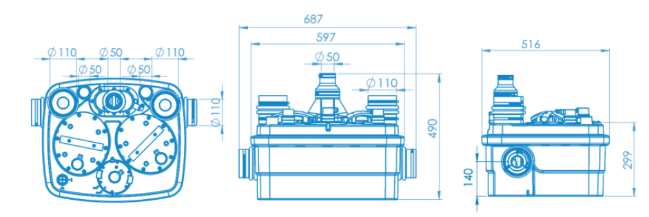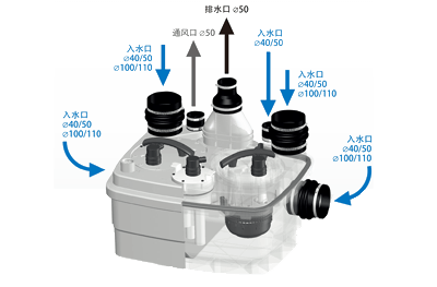 进水接口:40/50MM入水口(1个); 40/50/100/110MM入水口(4个)