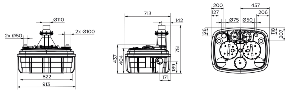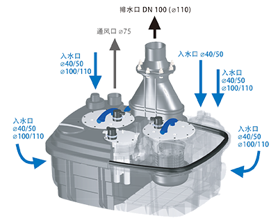 进水接口:40/50MM入水口(1个); 40/50/100/110MM入水口(4个)