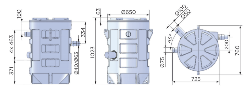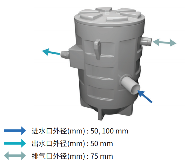 Sanipump® GR或VX,带闸阀和止回阀的排水配件,2个进水接口(DN50和DN100)